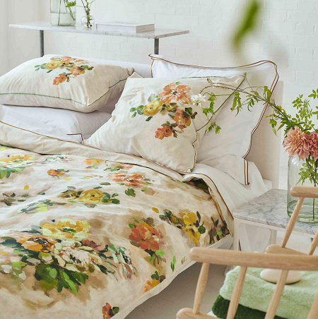 Giardino di Rose est disponible en housse de couette (140×200 cm, 200×200 cm, 240×220 cm et 260×240 cm) et en taie d’oreiller (64×64 cm et 50×75 cm).