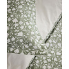De petites fleurs printannières blanches s’étalent sur un fond vert tendre en percale 100% coton.
