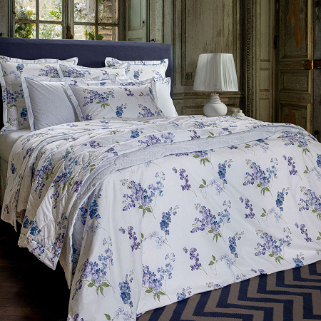 Anne de Solène nous propose ici un magnifique imprimé où les fleurs aquarellées font naître de nouveaux dégradés de bleus et de violets. Ce subtil jeu de lumière insuffle une douceur onirique.