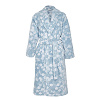 Peignoir col châle, 100% coton, 450 g/m² - Extérieur et intérieur bouclette - Jacquard motif feuillages bleus et blancs.