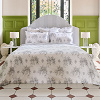 Le modèle Evanescence, en gris doux sur fond blanc lumineux, mêle la tendresse de ses motifs baroques angelots et guirlandes florales à l’élégance d’un revers rayé et d’un passepoil discret pour une touche campagne chic et moderne.