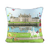 Coussin carré en jacquard en 50 x 50 cm (finition charme). Invitation pour un petit tour à cheval près du célèbre château de Chambord.