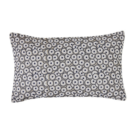 Coussin avec broderie d'un semis de marguerites, décliné ici en coloris gris anthracite.