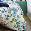 Blanc des Vosges nous présente ici un modèle de drap plat au paysage luxuriant et sauvage dans des camaieux de verts et de bleus. Ce modèle mettra en valeur vos plus belles chambres.