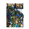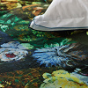 La marque nous propose ici un modèle composé de fleurs et feuilles peintes, joliment disposées sur un fond géométrique au motif kaléidoscopique, pour un superbe linge de lit aux tons vifs de cobalt, d’émeraude et d’azur. Motif géométrique entièrement réversible, avec finition aux tons turquoise et vert.