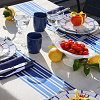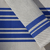 Les sept rayures, symbole des sept provinces basques, sont tissées en relief sur une magnifique toile épaisse en métis (coton-lin) qui lui donne son côté noble et rustique. La sobriété des rayures bleues, leur aspect satiné sur un sergé mat donnent à cette nappe, d’apparence classique, une note résolument contemporaine.