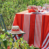 Nappes Ainhoa coloris jaune Paprika. Ce modèle 100% coton aux rayures Basques se décline dans les dimensions suivantes :