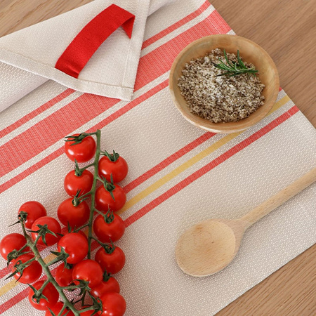 Le torchon Ondare possède de belles rayures basques conçues avec des fils de couleur de très grande qualité dans des coloris gourmands et solaires. Ce torchon apportera beaucoup de chaleurosité à votre cuisine tout en étant élégant et épuré.