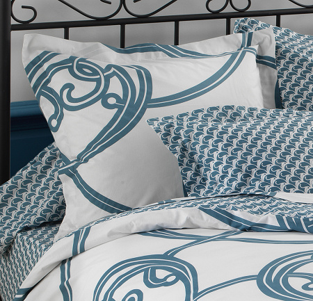Draps plats Arabesque Canard de la marque Jour de Paris. Ce modèle en coton imprimé arabesque est 100% coton 57 fils/cm² se décline dans les dimensions suivantes :