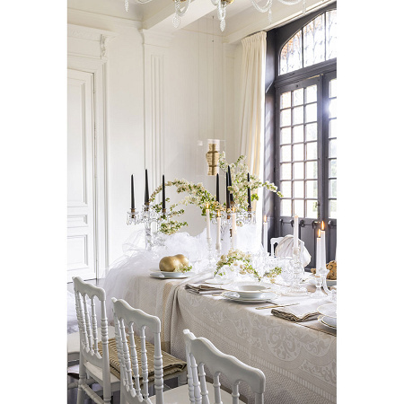 Evasion Céleste est en lin 100% et se décline en nappes carrées 175×175 cm, en nappes rectangulaires 175×250 cm et 175×320 cm.