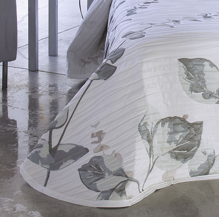 Couvre lit en jacquard réversible Sinead Bleu (style gaufré). Ce modèle est disponible en 3 tailles : 235x270 cm (lit 140 cm 2 personnes), en 250x270 cm (lit 160 cm 2 personnes) et en 280x270 cm (lit 180 cm 2 personnes).