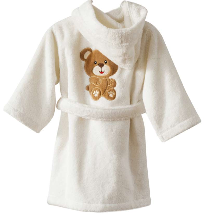 Ce modèle est disponible en peignoir brodé avec capuche (2 ans, 4 ans, 6 ans et 8 ans). Fermeture avec ceinture.